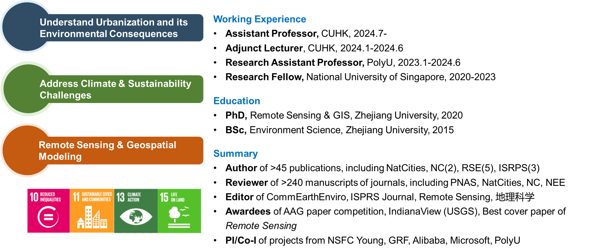 - 02/07/2024: I officially joined the Dept. of Geography and Resource Management at Chinese University of Hong Kong as a full-time Assistant Professor (tenure-track).